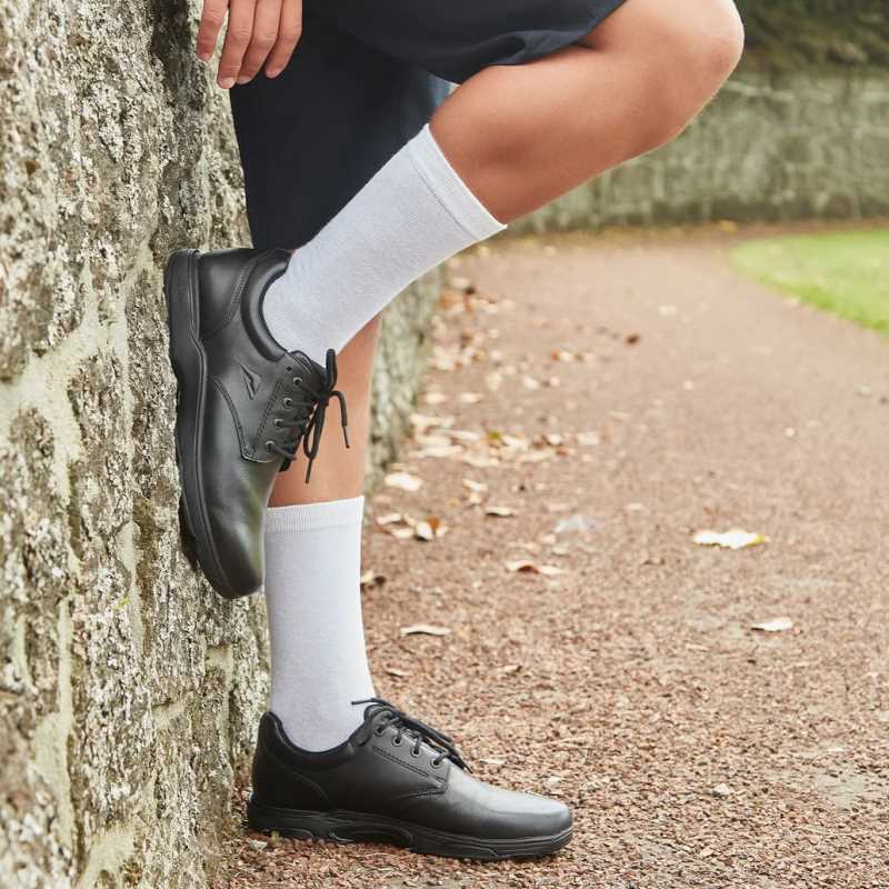 Sports Shoes in Disguise. Built to last rigorous everyday wear by the toughest of children, Apex in our D standard width provides stability and cushioning whilst being durable.